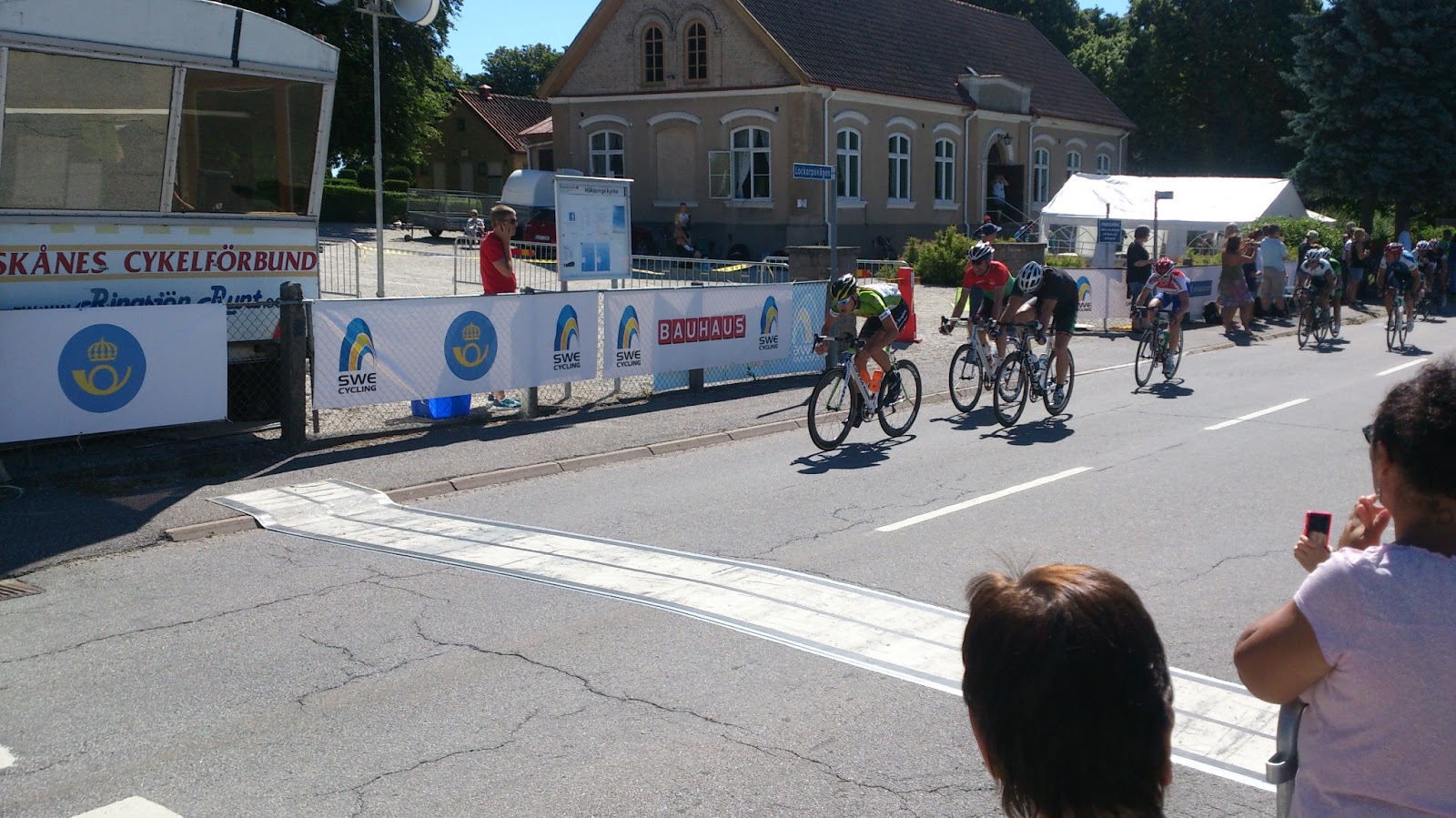 När det började närma sig cyklister bakifrån så kom övriga TP4U fram och började köra igen. När vi nästan varit loss i två varv så kom några ikapp oss och gruppen blev större. Jag halkade ner i gruppen men insåg när också klungan anslöt i slutet på motvinden att det skulle bli attacker direkt. Försökte avancera innan den där korsningen men kom väl inte tillräckligt långt fram. För visst blev det åka av igen och en grupp på 8-10 cyklister bröt sig loss. Jag var den som var närmast att komma med men som ändå inte kom med. Riktigt surt. Lite senare så pep två tre cyklister iväg från klungan och lyckades ansluta. Den gruppen blev givetvis den som innehöll tätkillarna i resultatlistan. Även om några anslöt till delar av den gruppen senare.