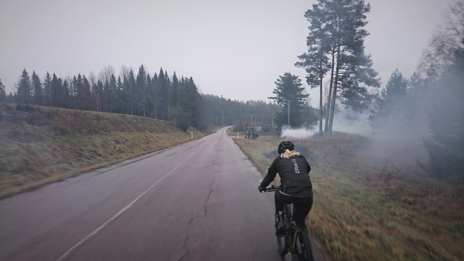 Bilden ovan är inte från dagens cykling, för då hade jag hjälm. Det där är från stigen tvärs över vägen där vi var in för att ta några bilder innan träningen. Vill ni ha en lika snygg mössa som jag så heter den Winter Cycling Cap och säljs av GripGrab.